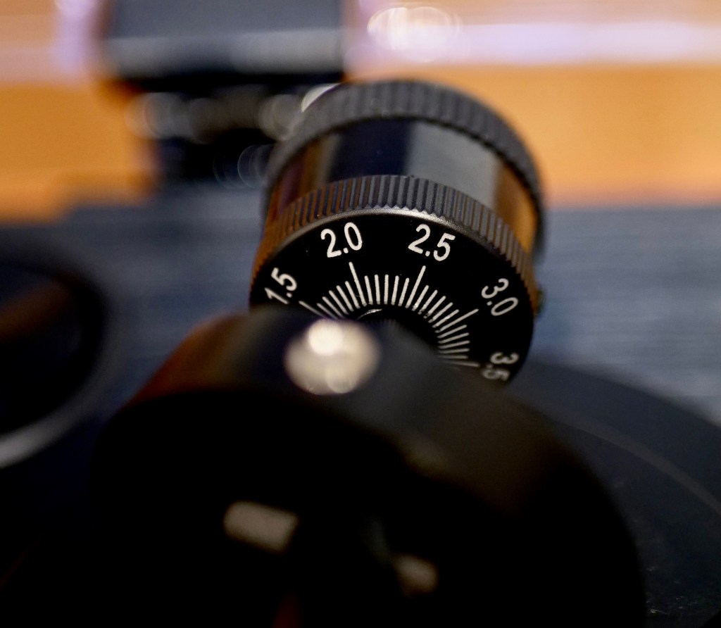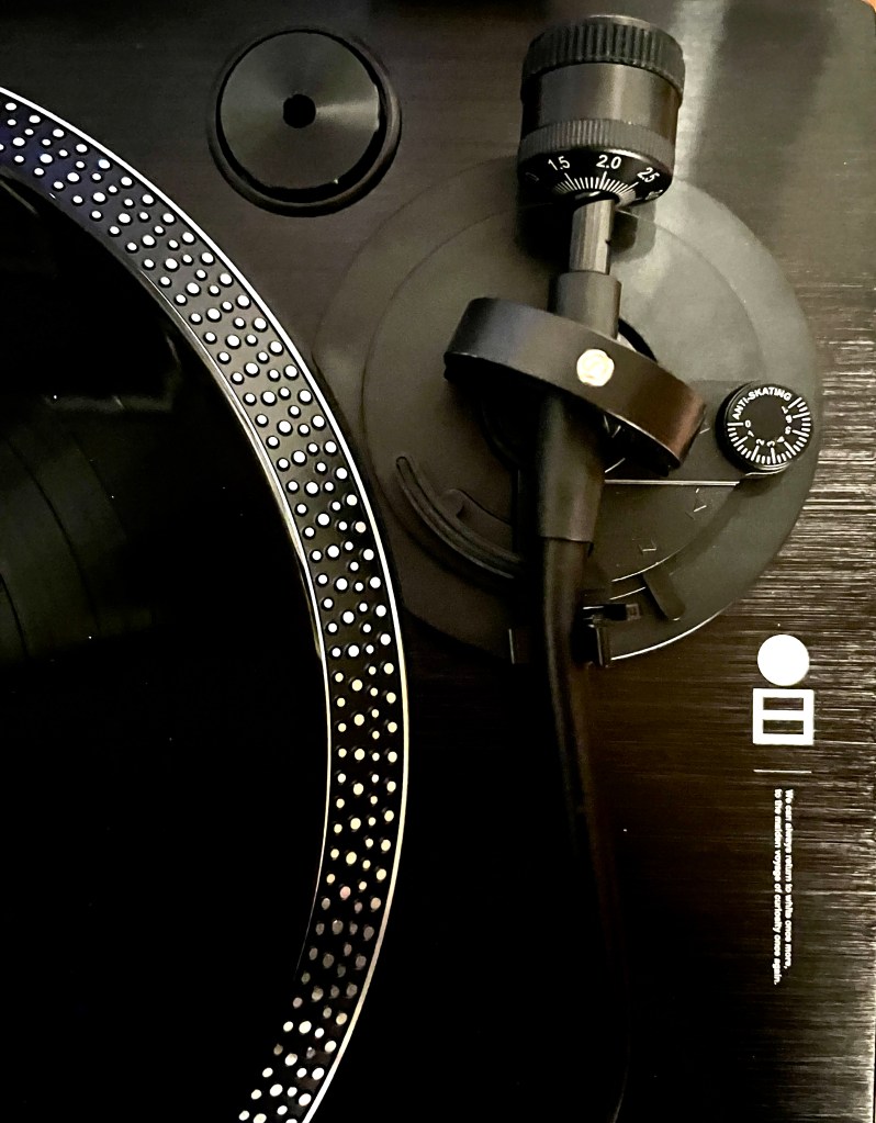 Anti-skating adjustment dial to prevent the needle from slipping inside the record