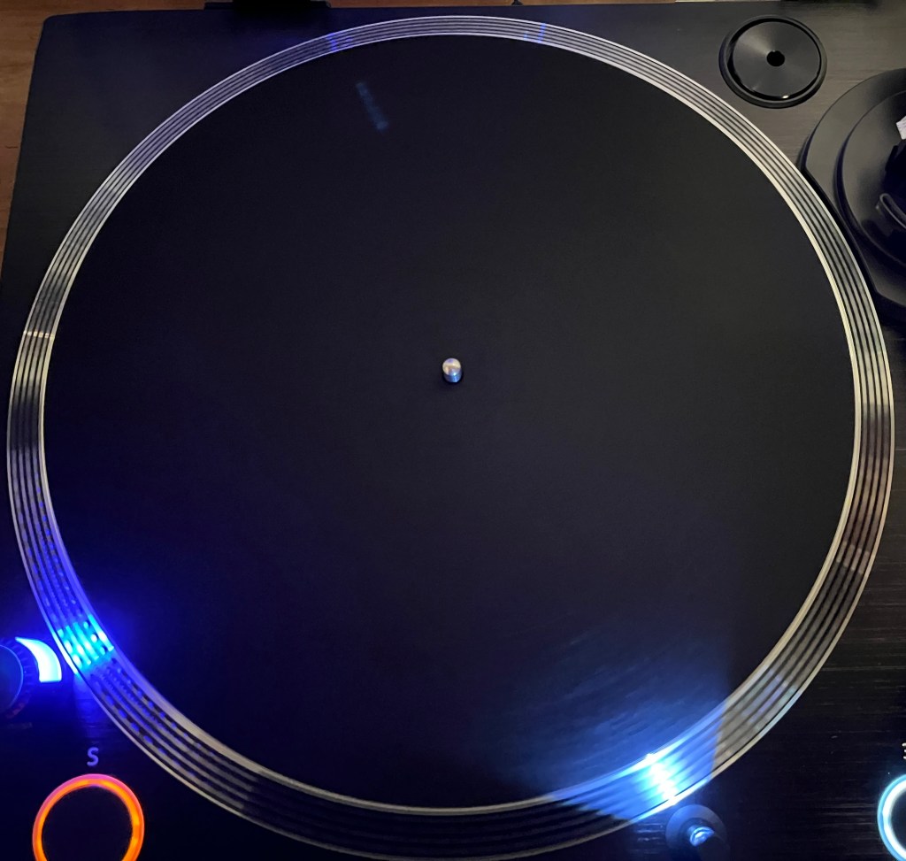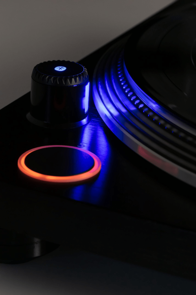The turntable is belt-driven, and it rotates a heavy-duty aluminum die-cast platter. It is equipped with a pitch controller. The pitch will initially be fast, but will slow down over time due to the aging of the rubber belt. To accurately reproduce the key and beat that music creators are particular about, use the knobs. Adjust the pitch to the correct setting using the strobe.